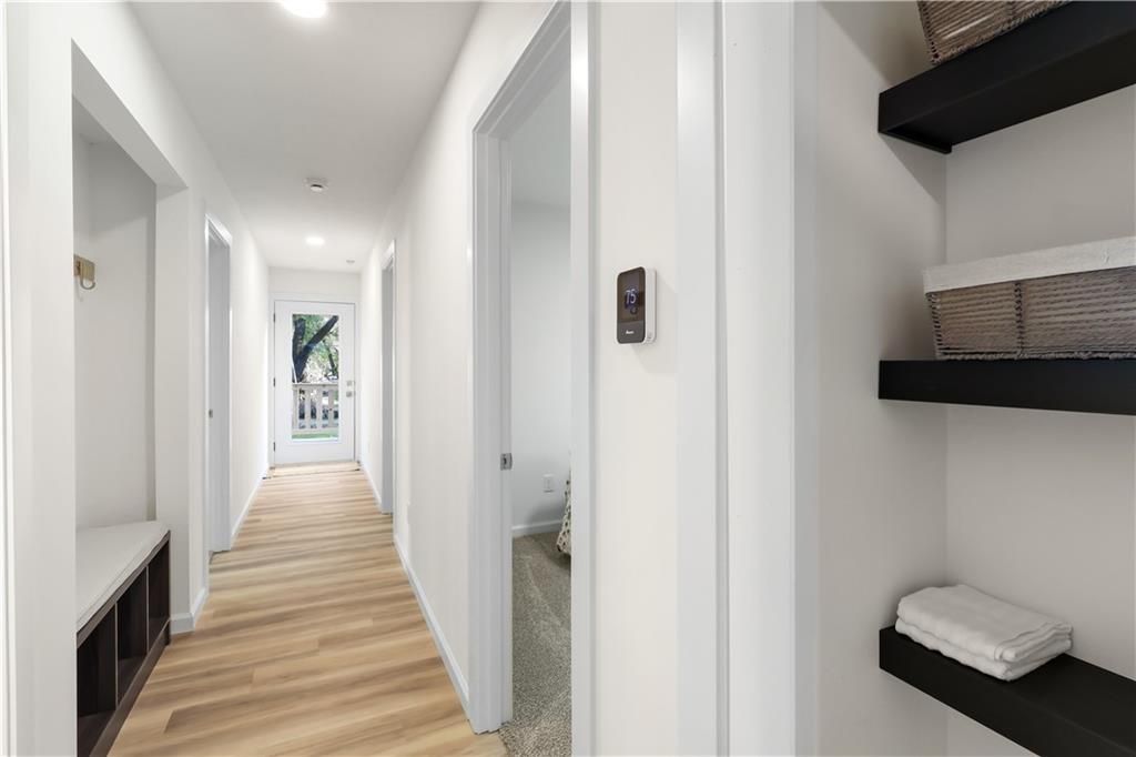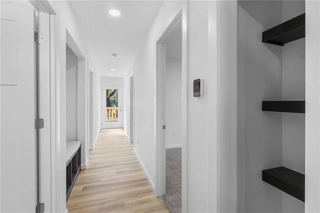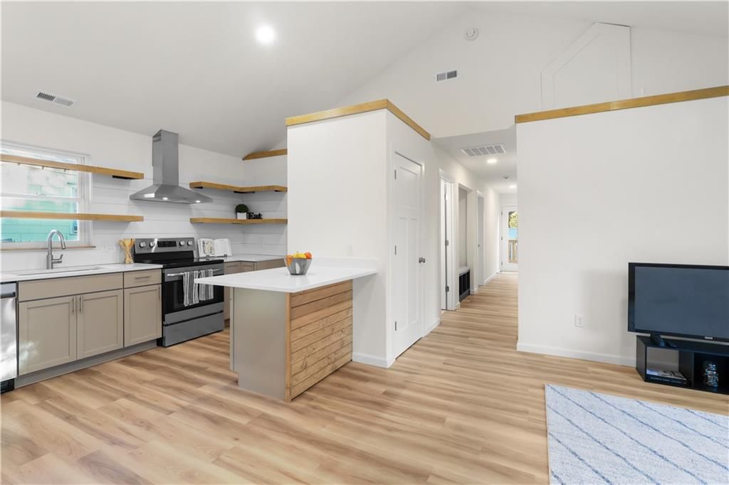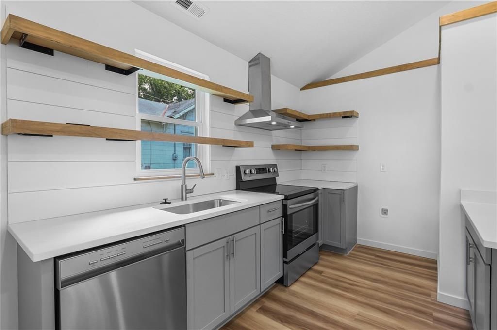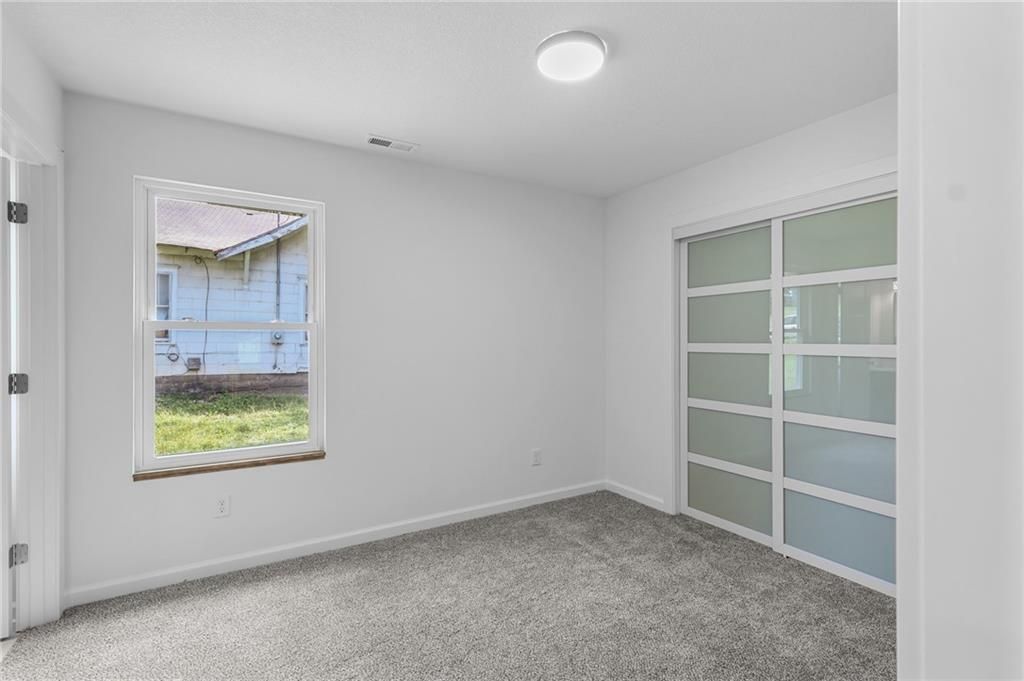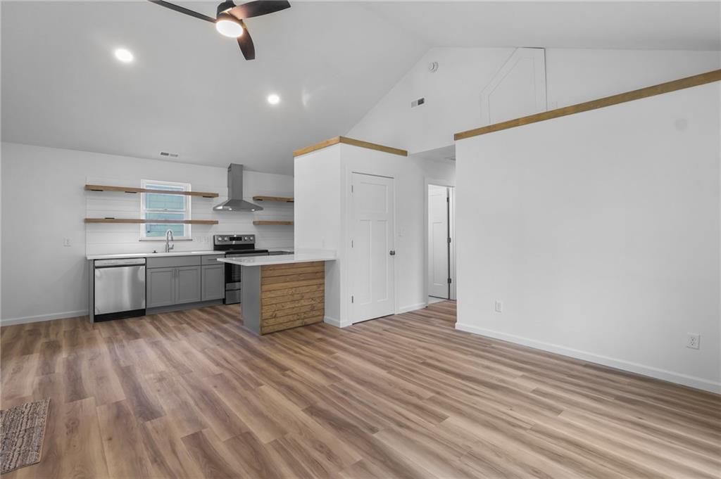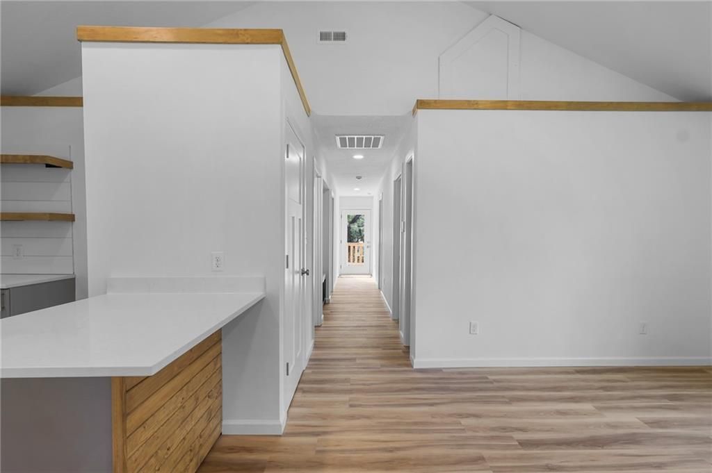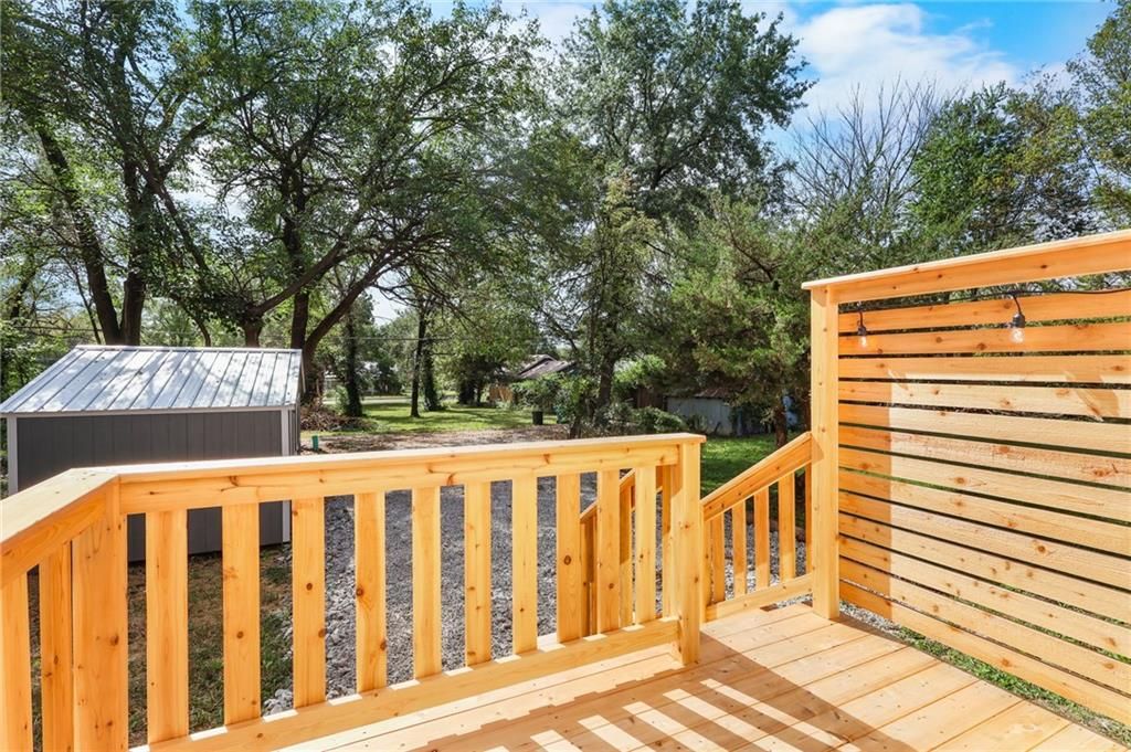Welcome to this STUNNING 3-bedroom, 1-bathroom new construction home located on a newly developed street in Osawatomie, surrounded by a neighborhood full of exciting growth with new homes and remodels. Step inside to an open concept design featuring tall, vaulted ceilings, stone countertops, and custom pre-finished cabinetry. Every detail has been thoughtfully designed including upgraded LVP flooring, premium doors, custom wood windowsills that add warmth and character. Laundry is conveniently located right off the kitchen for everyday ease. This home offers true zero-entry living from the front with no steps, making it highly accessible. Rooms are spacious with large closets; HVAC has been upgraded from a traditional builder grade system to a more efficient system. Off the back, enjoy a spacious deck perfect for relaxing or entertaining, along with dedicated parking and a large, oversized shed for all your storage needs. The efficient floor plan provides a highly functional layout while still feeling bright and spacious. Just blocks away from the O Zone Fitness Center, Osawatomie High School, John Brown Park, Ball Fields, Tennis Courts and Outdoor Basketball, this home combines comfort, convenience, and modern style in an ideal location. Don't miss the opportunity to own a brand-new home in a community on the rise!