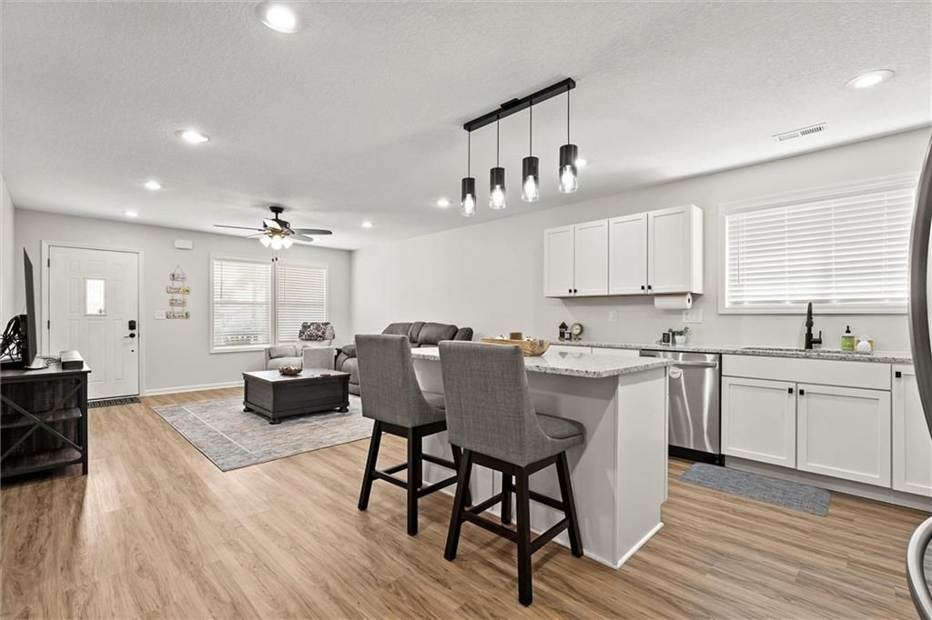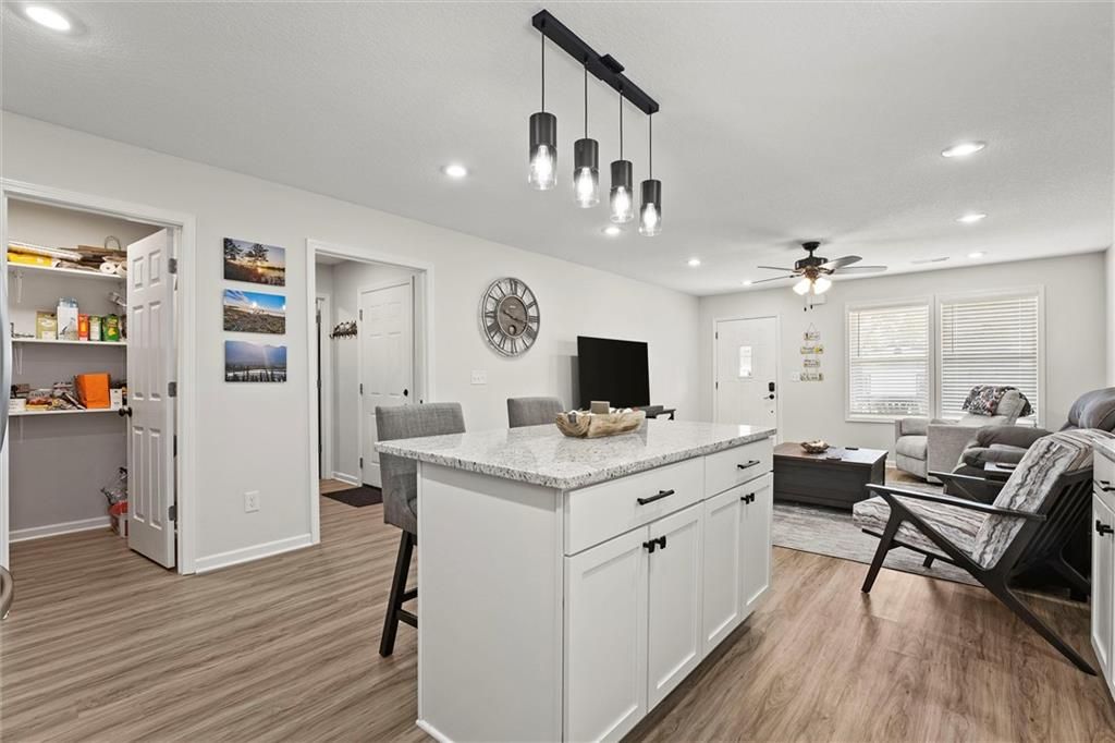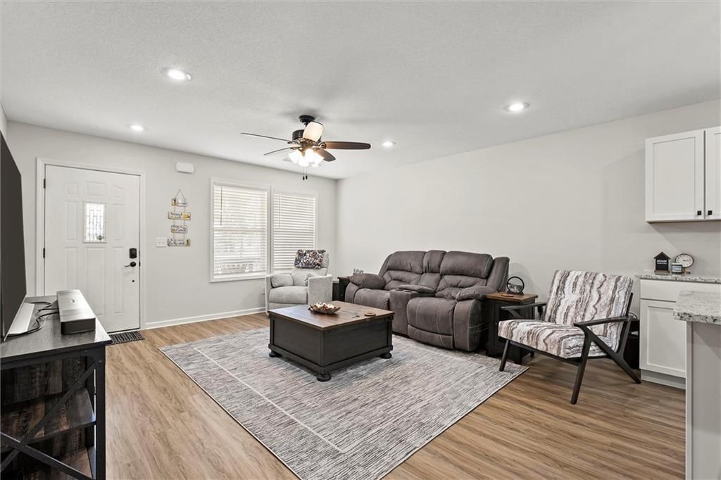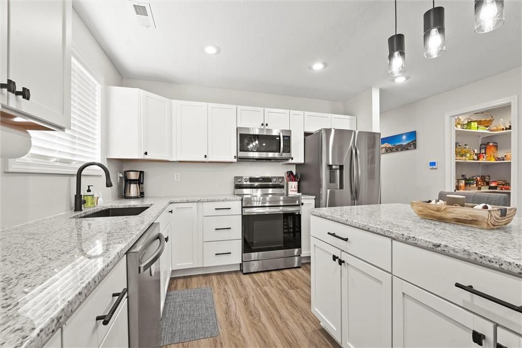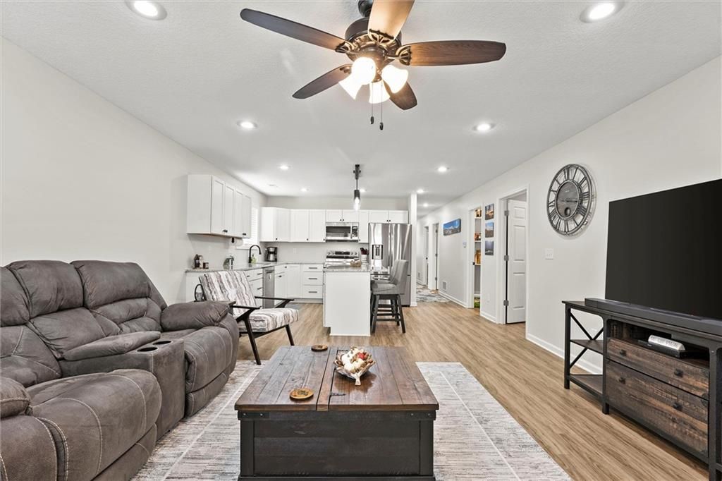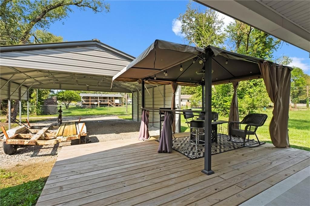 Welcome home to this better-than-new small-town charmer! This three-bedroom, two-bath home is filled with character, thoughtful details, and modern conveniences you'll love. Enjoy slow mornings with coffee on the darling front porch or host gatherings with ease thanks to the open and inviting floor plan. The kitchen is the heart of the home, featuring granite countertops, a spacious island, walk-in pantry, Samsung stainless steel appliances, and a Smart Things stove with a built-in air fryer. A touchless faucet and black stainless steel sink add both function and style. Just off the kitchen, a breezeway leads to a convenient laundry room. Down the hallway, you'll find a beautifully designed bathroom with a sleek LED lighted mirror featuring touch-switch memory and anti-fog. Three bedrooms complete the home, with the primary suite tucked away at the end of the hall. The primary bathroom offers dual vanities and two more modern LED lighted mirrors - perfect for everyday routines. Step out back to enjoy the new deck with pergola offering the perfect place to land with a cold drink after a long day! The new custom carport offers convenient additional parking. This home has it all - style, comfort, and charm. Come see for yourself why this small-town beauty is ready to welcome you home.