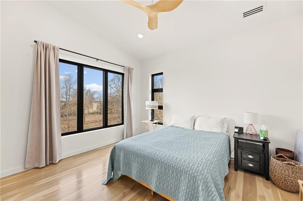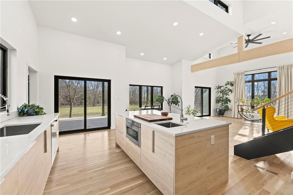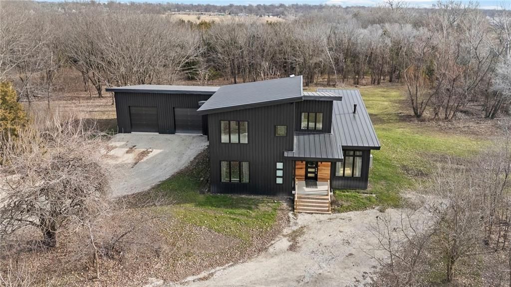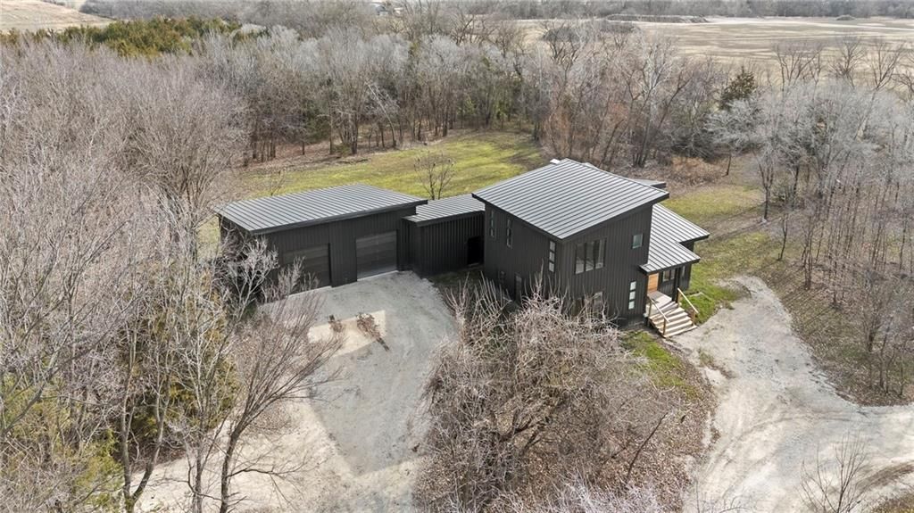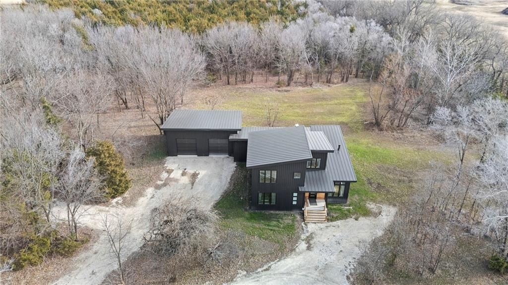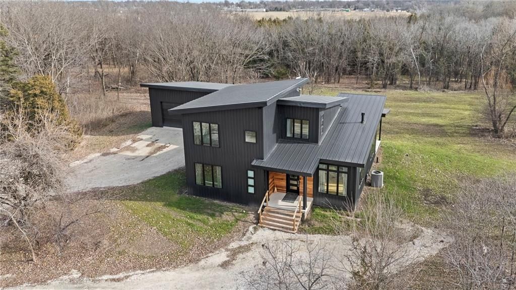 **MOTIVATED SELLER** Discover a truly one-of-a-kind new construction set on 9.5 private, wooded acres, offering peaceful seclusion just 0.2 miles from the city limits on a paved road. This custom-built modern home pairs clean architectural lines with warm natural materials, creating a light-filled, open-concept design with soaring ceilings. Built for longevity and efficiency, the home features 2x12 floor joists and 2x6 exterior walls, along with expansive dual low-E Pella Impervia insulated windows that flood the interior with natural light. White oak hardwood floors extend throughout the living areas and bedrooms, complemented by a striking floating staircase with thick white oak plank steps. The thoughtfully designed layout includes three bedrooms, two and a half bathrooms, and a spacious 1,000+ sq. ft. attached two-car garage with 10-foot garage doors. Bathrooms and the large laundry/mudroom are finished with durable tile flooring for everyday practicality. At the heart of the home, the chef-ready kitchen showcases premium finishes and a large island that seamlessly connects to the dining and living spaces - ideal for both daily living and entertaining. The main-floor primary suite offers a private, serene retreat, while additional rooms flex easily as guest suites, a home office, or creative studio. Indoor-outdoor living is emphasized through access to a covered patio overlooking quiet forest views, perfect for morning coffee or relaxing evenings under the stars. Despite its private setting, the property is fully connected to city water, gas, and electrical services, blending modern convenience with acreage privacy. This exceptional property offers a rare combination of modern design, superior craftsmanship, and natural surroundings - a lifestyle opportunity seldom to be found. Schedule your private showing today.