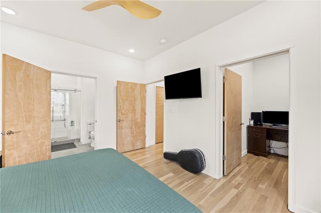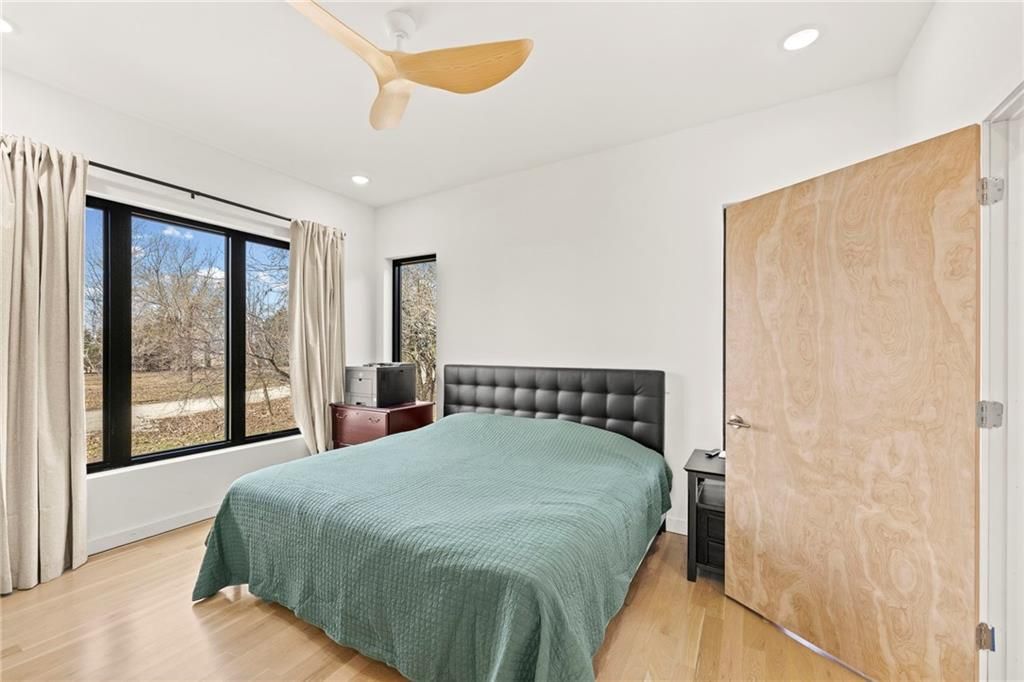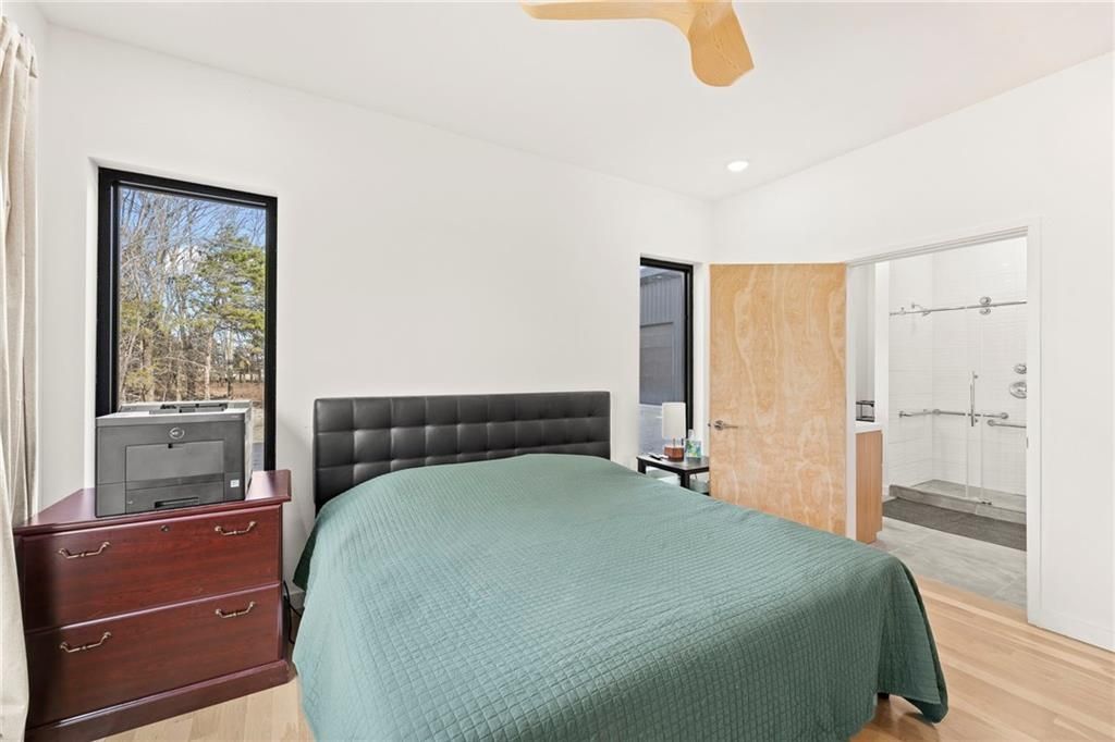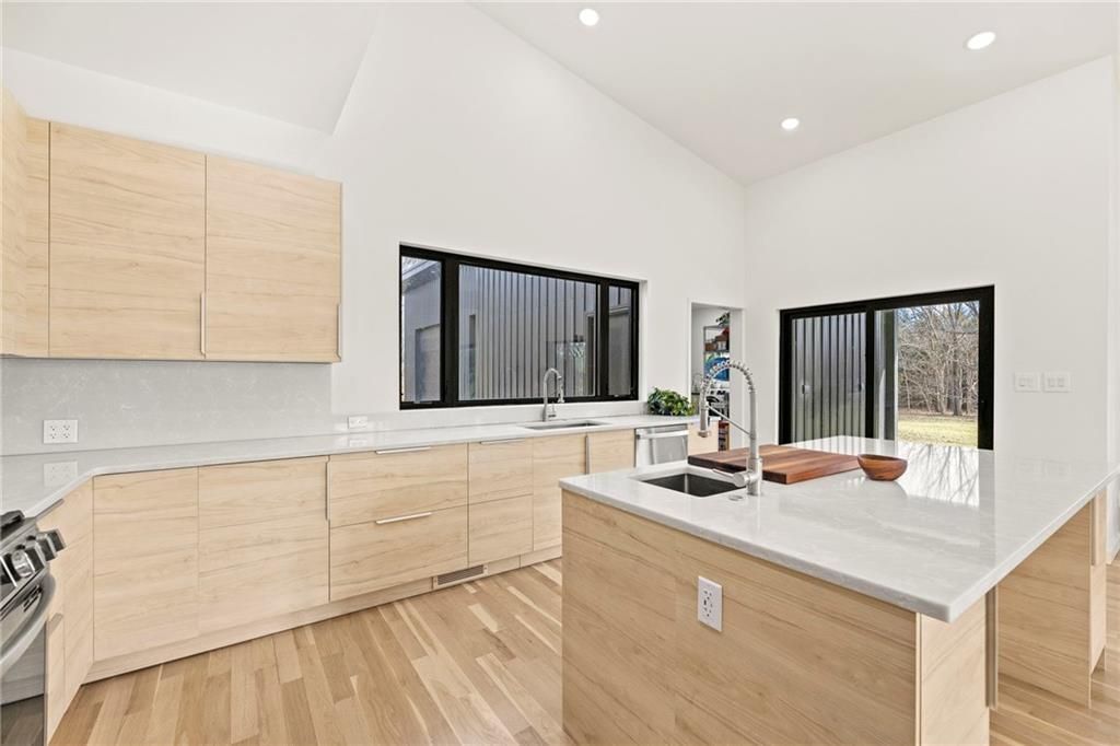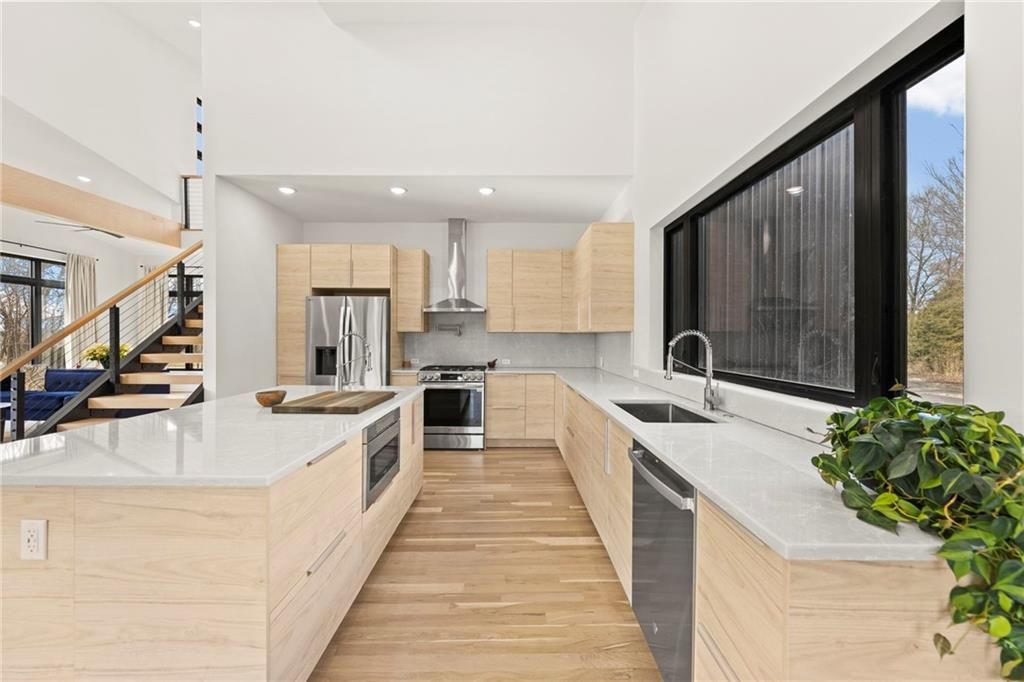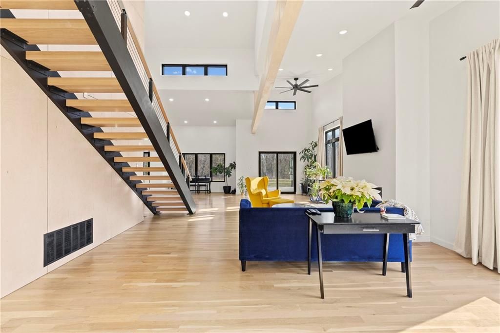 **MOTIVATED SELLER** Discover a truly one-of-a-kind new construction set on 9.5 private, wooded acres, offering peaceful seclusion just 0.2 miles from the city limits on a paved road. This custom-built modern home pairs clean architectural lines with warm natural materials, creating a light-filled, open-concept design with soaring ceilings. Built for longevity and efficiency, the home features 2x12 floor joists and 2x6 exterior walls, along with expansive dual low-E Pella Impervia insulated windows that flood the interior with natural light. White oak hardwood floors extend throughout the living areas and bedrooms, complemented by a striking floating staircase with thick white oak plank steps. The thoughtfully designed layout includes three bedrooms, two and a half bathrooms, and a spacious 1,000+ sq. ft. attached two-car garage with 10-foot garage doors. Bathrooms and the large laundry/mudroom are finished with durable tile flooring for everyday practicality. At the heart of the home, the chef-ready kitchen showcases premium finishes and a large island that seamlessly connects to the dining and living spaces - ideal for both daily living and entertaining. The main-floor primary suite offers a private, serene retreat, while additional rooms flex easily as guest suites, a home office, or creative studio. Indoor-outdoor living is emphasized through access to a covered patio overlooking quiet forest views, perfect for morning coffee or relaxing evenings under the stars. Despite its private setting, the property is fully connected to city water, gas, and electrical services, blending modern convenience with acreage privacy. This exceptional property offers a rare combination of modern design, superior craftsmanship, and natural surroundings - a lifestyle opportunity seldom to be found. Schedule your private showing today.