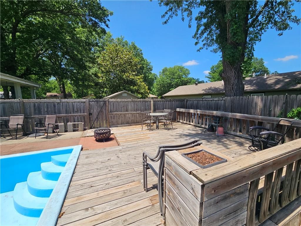 Well cared for and uniquely designed mid-century home with updates showcasing both functionality and decor! Enter into a front living room featuring vaulted ceiling and lovely fireplace! Also enjoy a secondary living space with a 2nd fireplace in family room that overlooks spacious outdoor deck and inground pool! Lovely galley style kitchen with appliances and amenities and separate laundry/utility room. Enjoy additional space which can utilized for multiple purposes in finished portion of lower level that walks out to backyard where there is a shed for storage. Attached carport also features storage. Very desirable location near PSU in SW Pittsburg. You have to see this one to get the true feel of it's charm!