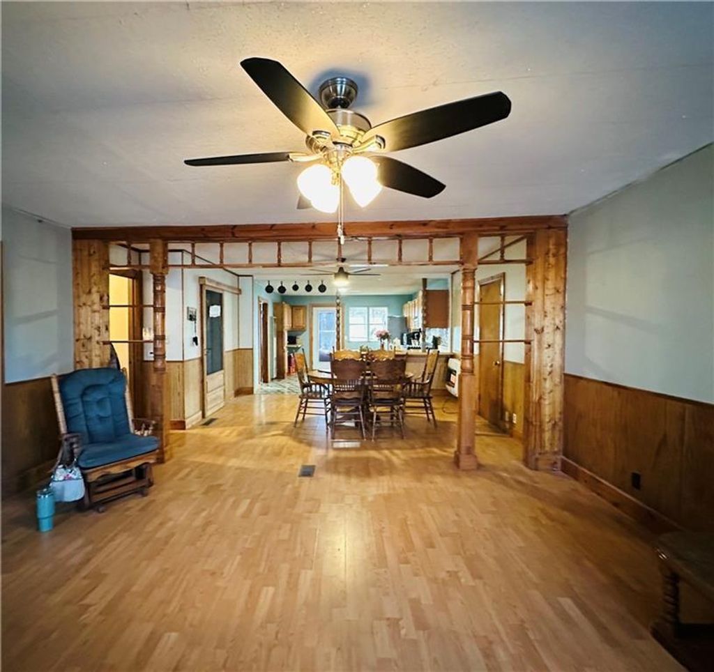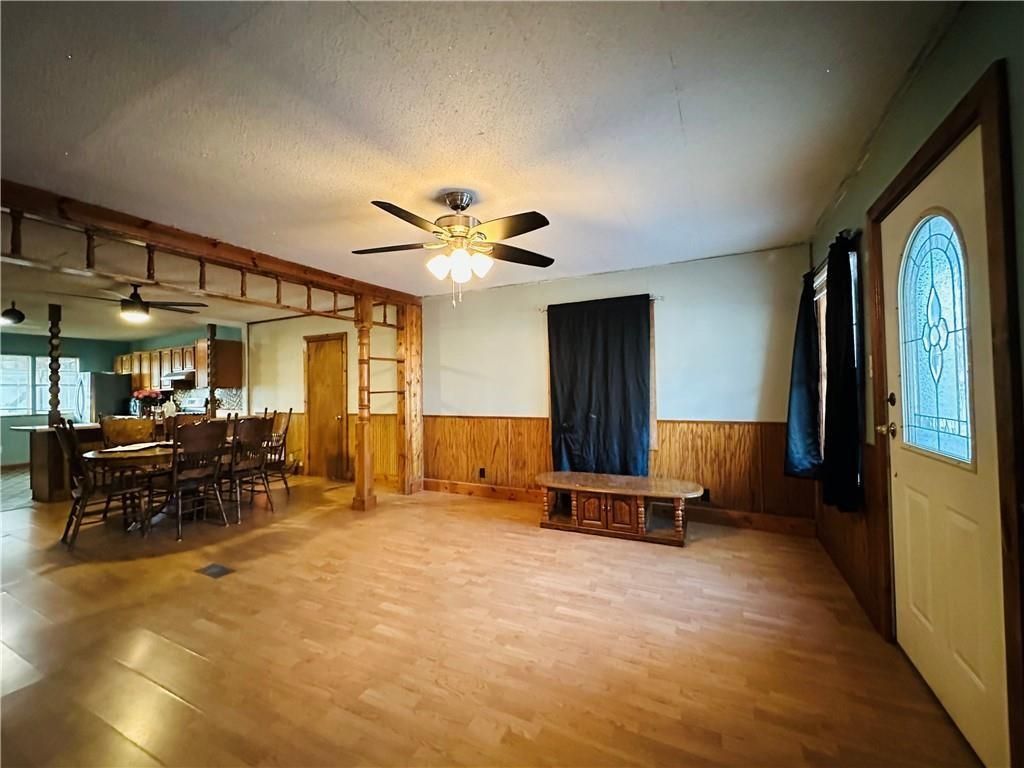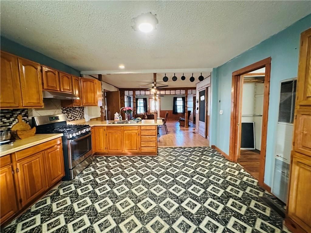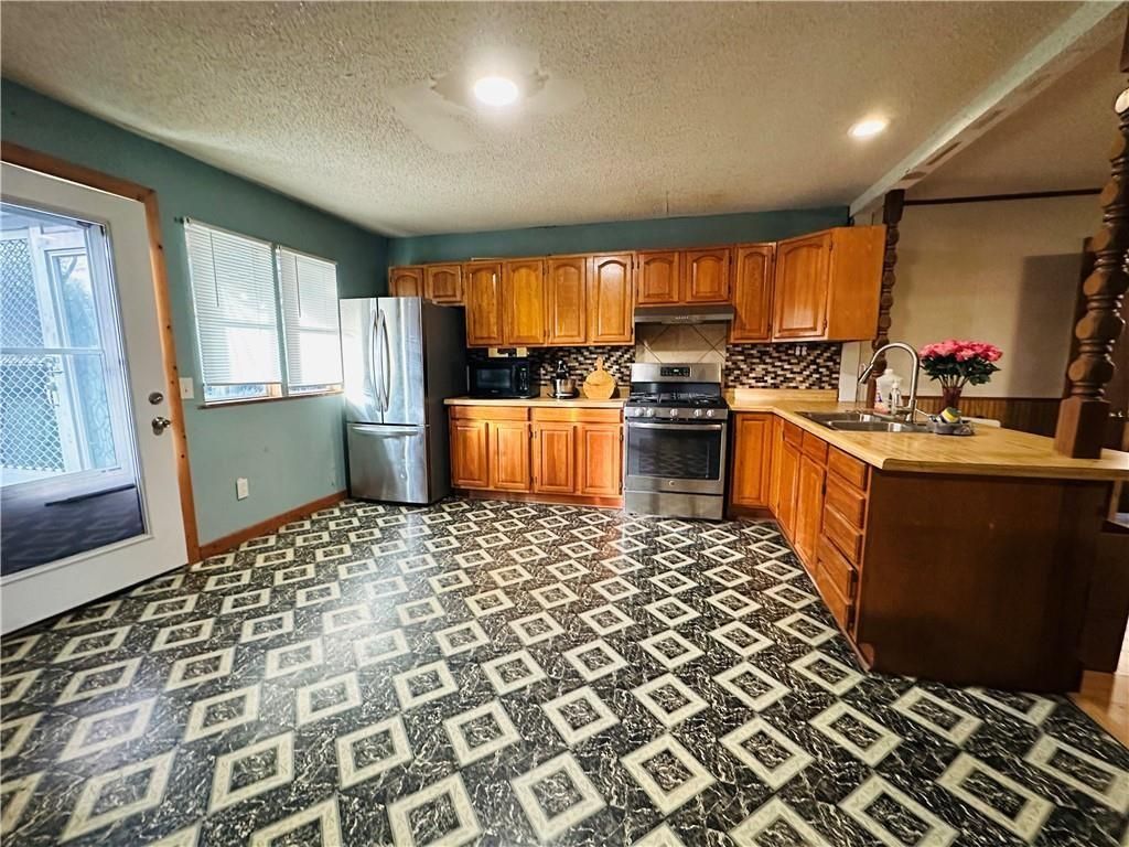 Welcome to this 3-bedroom, 2-bathroom home offering 1,152 sq ft of living space. Conveniently located near the Arma ballparks, community pool, downtown, and high school, this property combines comfort, functionality, and accessibility. Step inside to an open-concept floor plan that effortlessly connects the living, dining, and kitchen areas - perfect for everyday living and entertaining. The kitchen is complete with a stylish backsplash, stainless steel gas stove, and refrigerator - ideal for the home chef. The primary suite includes a spacious closet and an ensuite bath with a walk-in shower and additional storage. One of the secondary bedrooms offers a private entrance and flex space, making it great for guests, a home office, or hobby room. A dedicated laundry area with a stackable washer and dryer adds convenience. Designed with accessibility in mind, this home includes wide doorways and ample space to move throughout with ease. Recent updates include a new hot water heater, wall furnace, and appliances - all less than three years old. Outdoors, enjoy the 220 sq ft sunroom, relax on the 150 sq ft deck with handicap-accessible ramp, or take advantage of the oversized 24x24 ft one-car garage and two 8x12 ft outbuildings - one with a covered patio, ideal for additional storage or workshop use. This property is being sold "as is" and does require some TLC, but it offers incredible potential. Don't miss your chance - schedule your showing today!