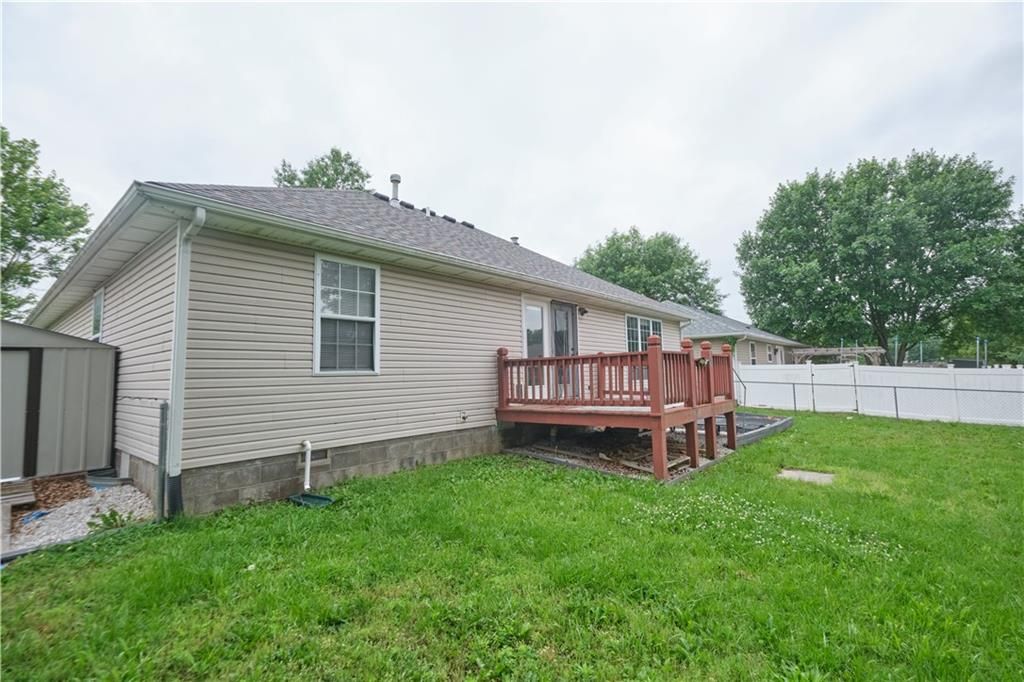 NEW PRICE!! Charming, Low-Maintenance Ranch in a Peaceful Neighborhood! Welcome to this beautifully maintained 3-bedroom, 2-bath ranch-style home, offering easy, one-level living with timeless curb appeal. The classic brick and vinyl exterior is complemented by a welcoming covered front porch and a 2-car garage. Step inside to discover a bright, open great-room with cathedral ceilings and large windows that fill the home with natural light. The well-designed floor plan offers spacious living and functionality, perfect for everyday comfort. The timeless kitchen features stainless steel appliances, ample cabinetry, and a cozy eat-in area. French doors off the dining space lead to a private back deck - ideal for morning coffee or evening relaxation. The fully fenced backyard includes a handy garden shed for all your outdoor storage needs. With no stairs to navigate, this home is a perfect fit for first-time buyers, downsizers, or anyone seeking a simpler lifestyle in a quiet, established neighborhood. Don't miss your chance to call this delightful home yours - schedule a showing today!