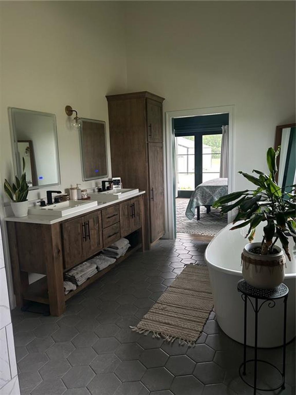 Located on 47 Hwy and nestled on pristine acreage, this newly built, stunning 4,100 + sq ft home blends classic charm with modern luxury in all the right ways. With 5 spacious bedrooms, 3 beautifully appointed bathrooms, and two inviting living areas, there's room for everyone - and then some. Bonus: Finished live-in basement 9' finished ceilings with additional plumbing already installed for an added wet bar or kitchenette (if you choose) + extra storage area. At the heart of the home, a dream kitchen awaits: - Open concept, beautiful quartz countertops Custom cabinetry- plenty of storage Hidden walk-in pantry with quartz countertops Top-of-the-line appliances Designed for gathering, cooking, and making memories. Two sets of graceful French doors invite you out to a back patio and charming pergola - one opening directly from the master suite - where quiet mornings bloom with sunlight and evenings unfold beneath the stars. The back outbuilding offers the perfect space for hobbies, a workshop, or additional storage. A detached 2-car heated garage, and if approximately 3.8 acres isn't enough? More land is available- 13 extra acres available with a small pond for purchase to grow your legacy. Acreage is fenced with 6 strand barbed wire. From the hand-crafted finishes to the wide-open spaces, every inch of this property says welcome home - with style, grace, and just the right touch of grandeur.