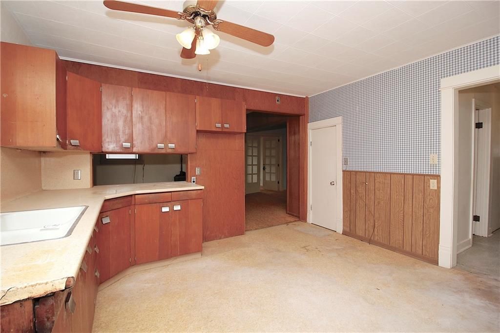 Your next project is ready for some love! Loads of potential here! Office could be a 5th bedroom on the main floor. Laundry room has a vintage sink. Room to add cabinets in the kitchen if needed. Pantry is under the stairway. Lots of storage in the upstairs bathroom. Detached 288 square foot 1-car garage has a concrete floor. 108 square foot shed. Enjoy sipping on your favorite beverage on your covered patio on the back of the home overlooking a treed yard. Parking areas in the front and back of the home. ***** New price includes new HVAC, new electric panel, siding repair and new toilet and flooring in upstairs bath*****
