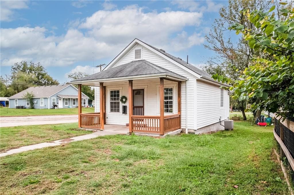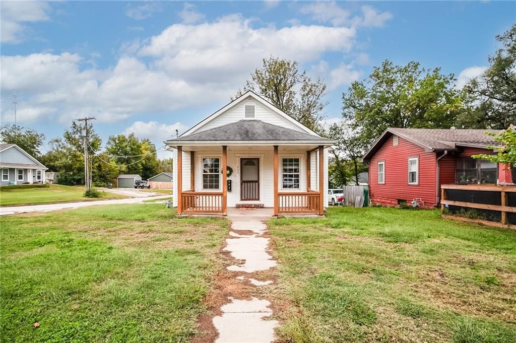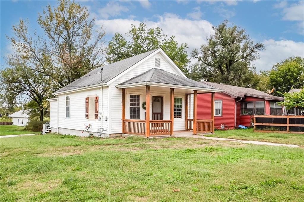 Charming 2-bedroom, 1-bath bungalow on a corner lot. This updated home features a covered front porch, main-level laundry, and a basement for additional storage. Off street parking on the side. Move-in ready, it offers comfortable living with small-town appeal. Great opportunity for a first-time homebuyer or investor.